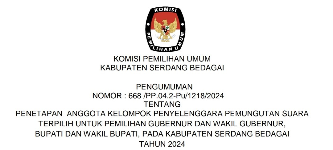 PENGUMUMAN PENDAFTARAN CALON ANGGOTA KELOMPOK PENYELENGGARA PEMUNGUTAN SUARA UNTUK PILKADA TAHUN 2024.