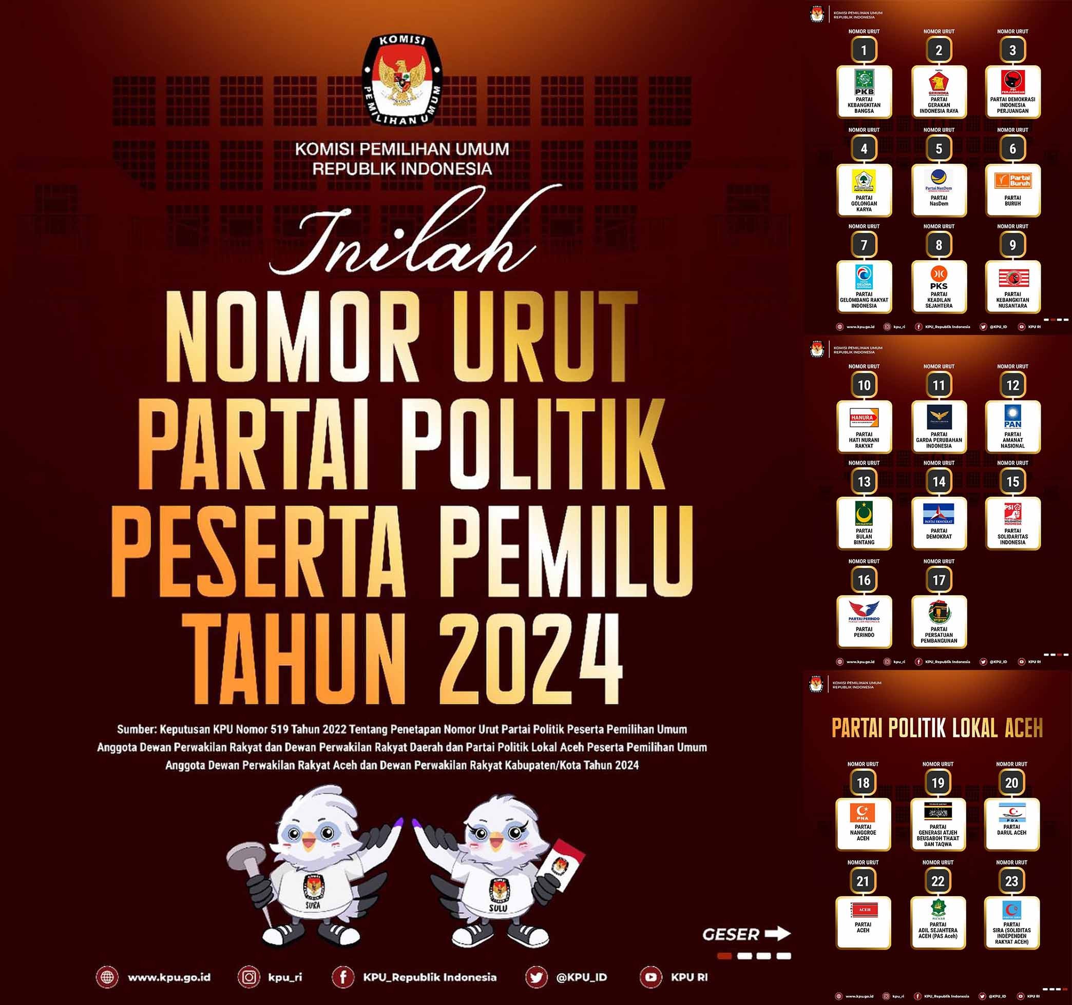 NOMOR URUT PARTAI POLITIK PESERTA PEMILU 2024