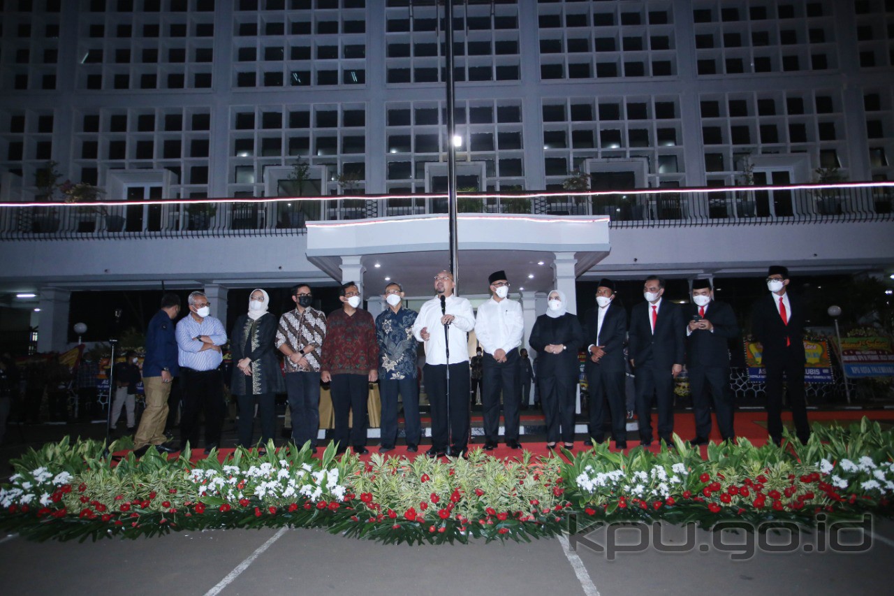 Jakarta, kpu.go.id – Selain prosesi penyambutan Anggota KPU RI Periode 2022-2027 dan pelepasan Anggota KPU RI Periode 2017-2022, di hari yang sama, Selasa (12/4/2022) juga berlangsung pleno perdana Anggota KPU RI Periode 2022-2027.